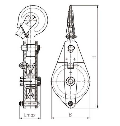 1、吊钩特点:优质合金钢模锻而成,3倍安全系数。 2、滑轮:铸铁滑轮、铸钢滑轮、热轧滑轮。 3、滑轮套芯:复合耐磨铜套、纯铜套、滚珠轴承、滚针轴承。 4、其他吨位可以定做。